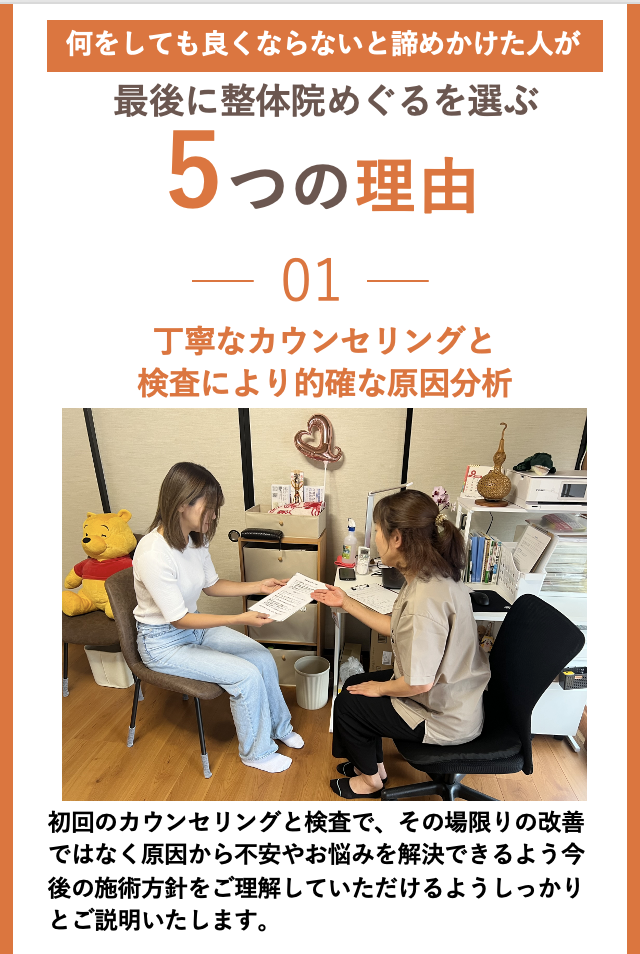 当院は何をしてもどこに行っても改善しない方の為の整体院です。