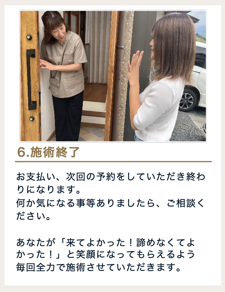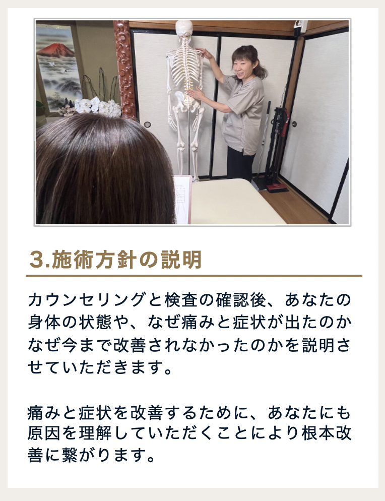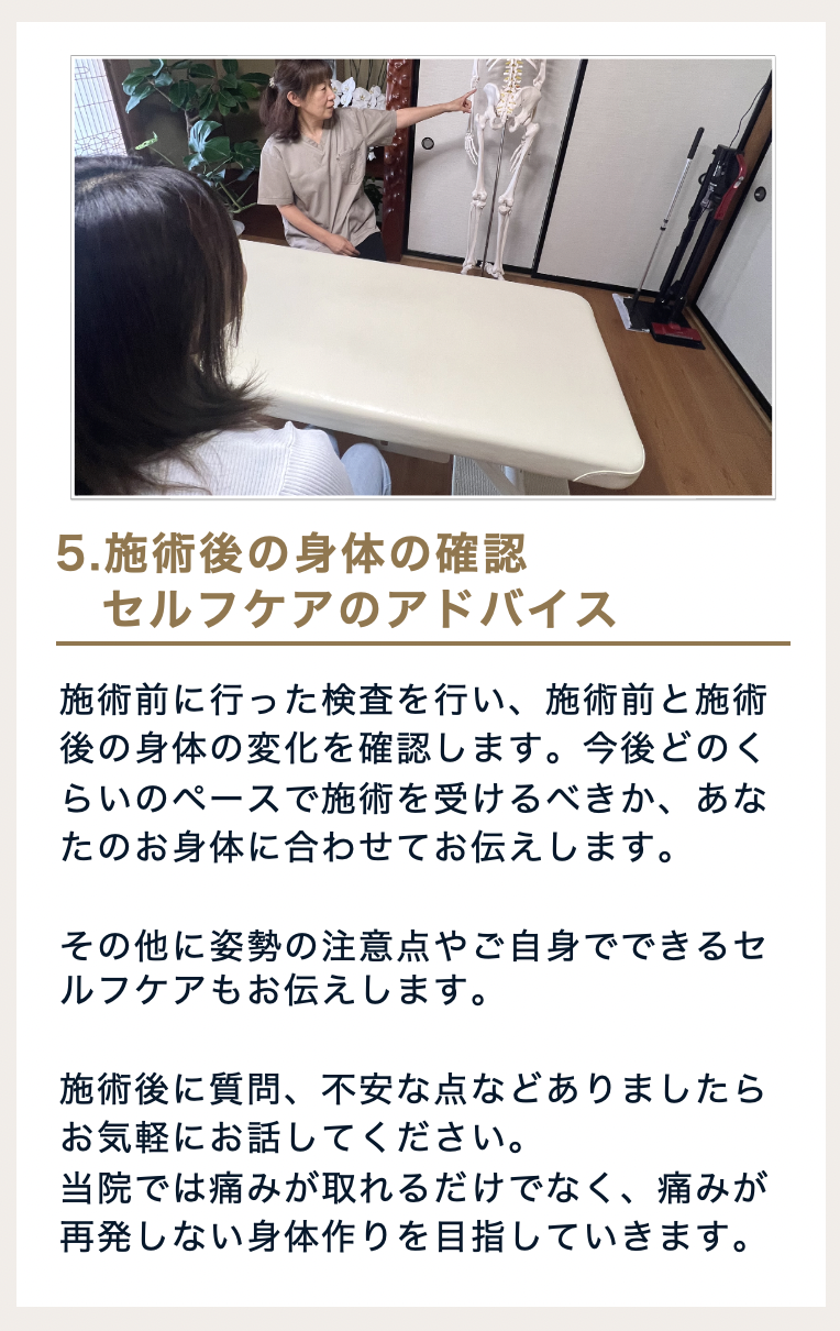 「こんなのでよくなるの?」と思う方もいるかもしれませんが、長時間の施術を行うのは逆に負担をかけ過ぎてしまうパターンもあります。特に重症者の場合は長時間の施術は負担になります。